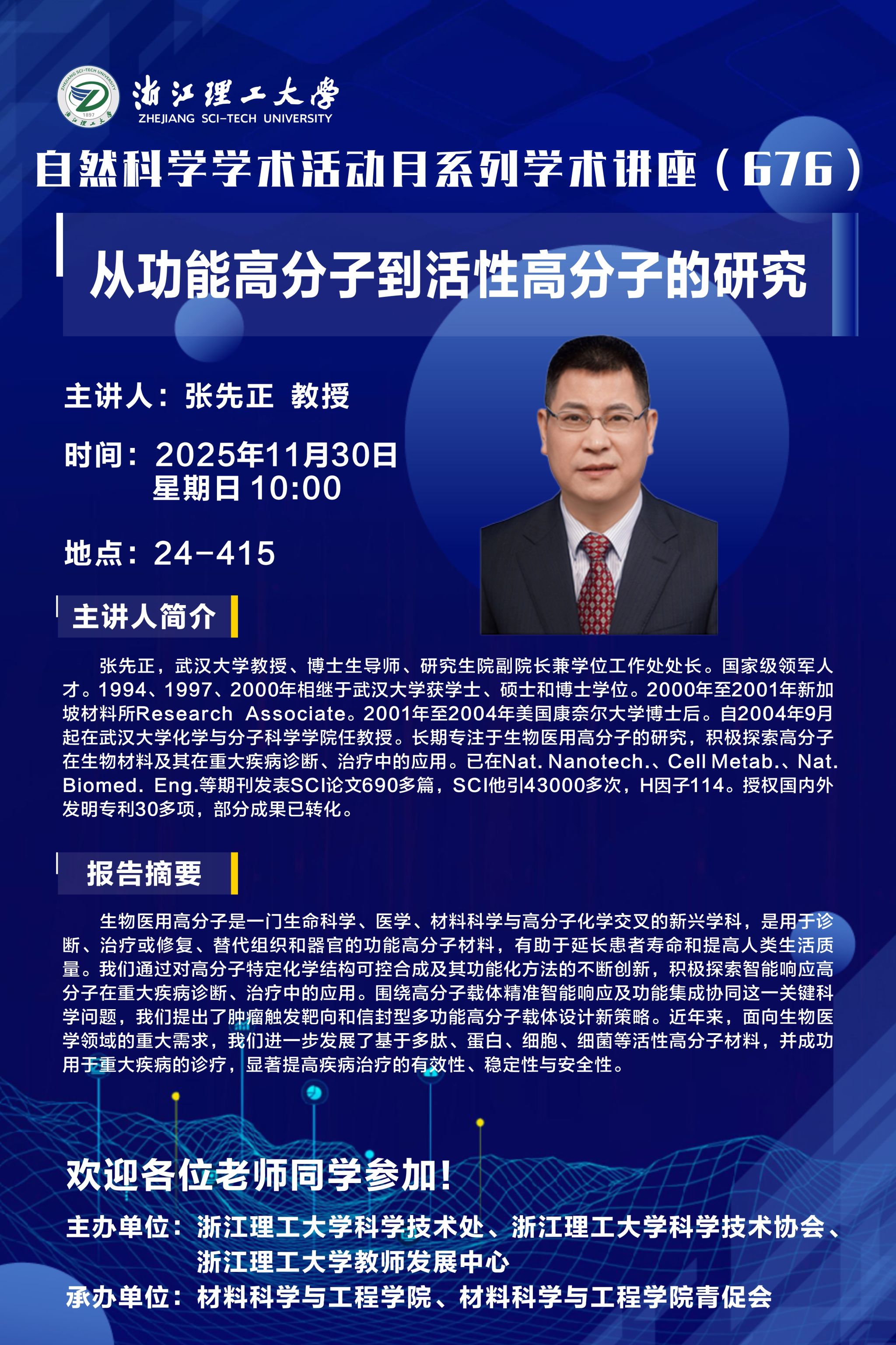 学术讲座【127】:从功能高分子到活性高分子的研究