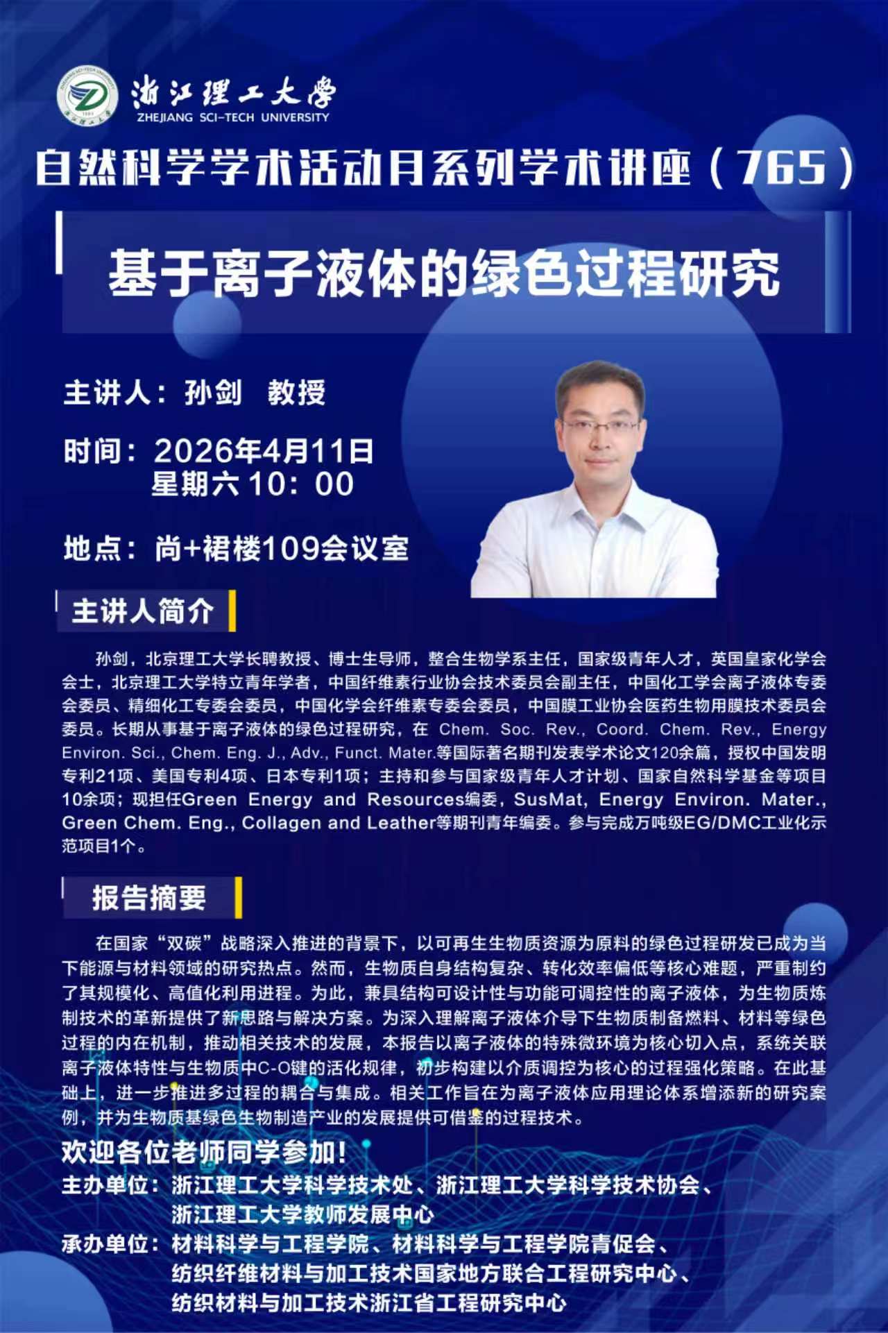 学术讲座【133】:基于离子液体的绿色过程研究